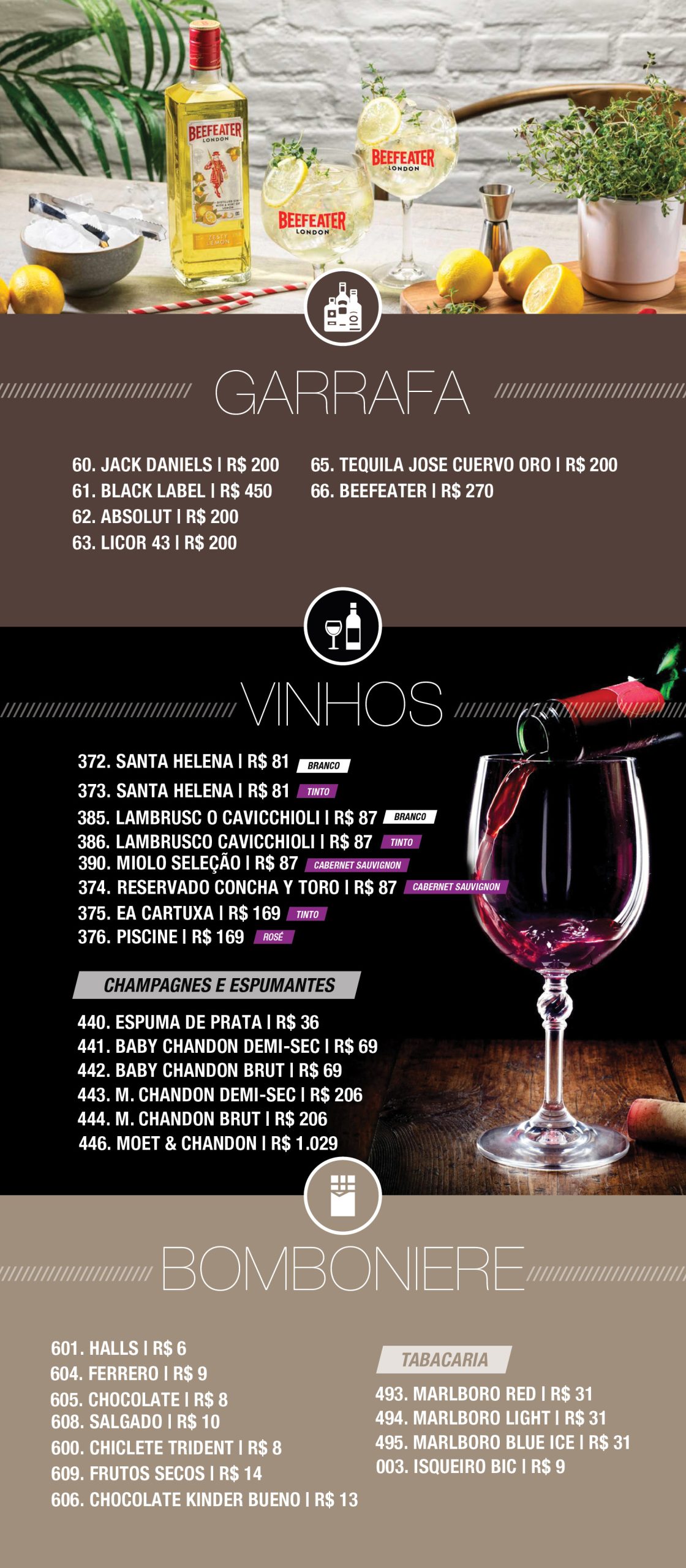 Nosso cardápio oferece desde petiscos e lanches rápidos até pratos principais, sobremesas e drinks, ideais para celebrar um momento a dois ou entre amigos com estilo e prazer.