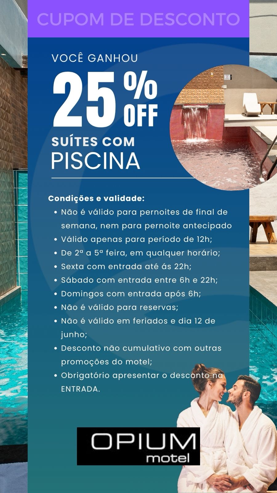 Conforto, privacidade e sofisticação agora mais acessíveis. No Opium, acreditamos que momentos especiais merecem ser vividos com classe — todos os dias.